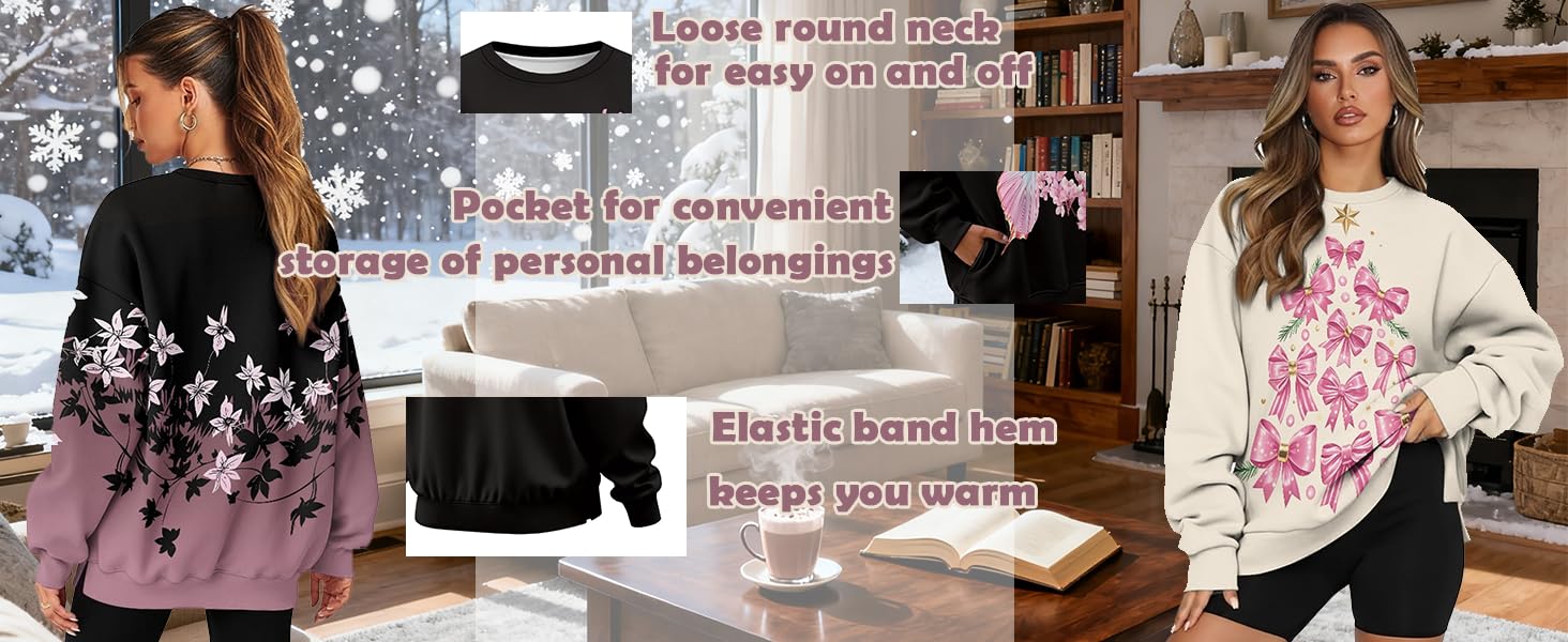 [Modern Design]: This crew neck sweatshirt for women features a stylish pockets and drop shoulder that adds a touch of elevated detail to a classic design. The oversized is pairing perfectly with jeans, leggings, or skirts to create a balanced and trendy silhouette