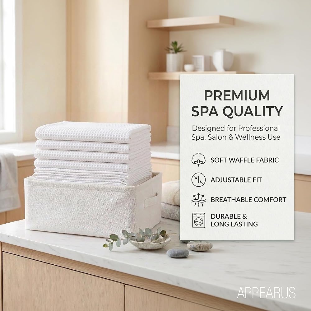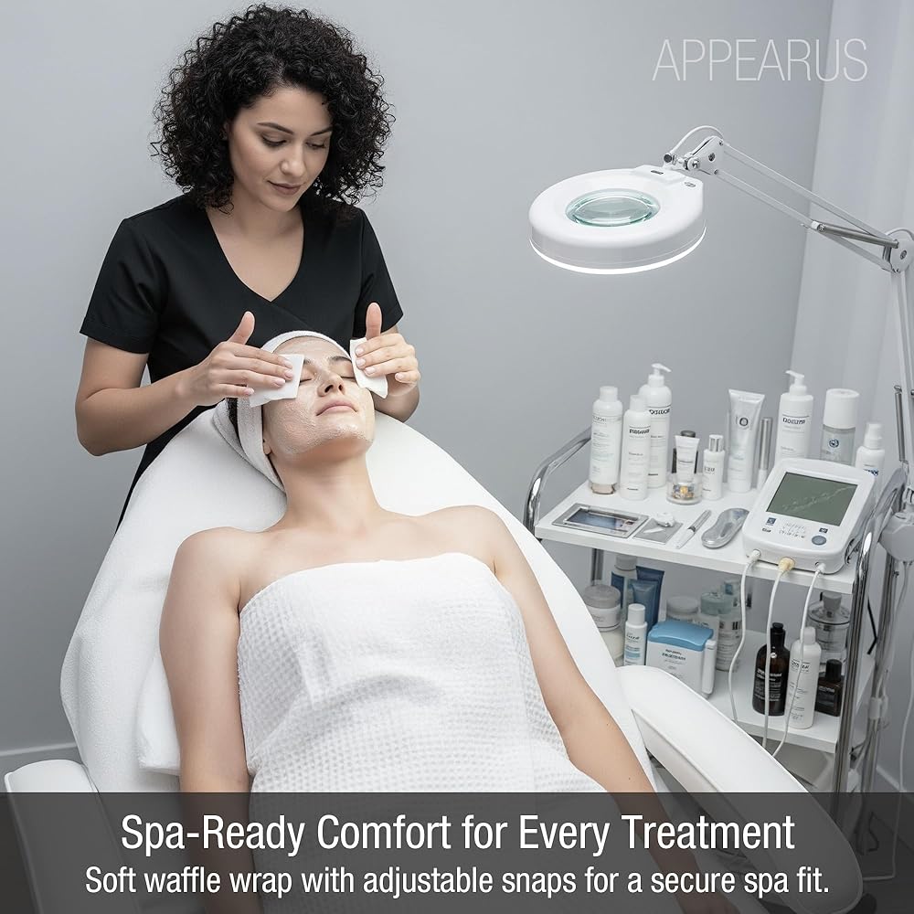 Secure 4-Snap Closure — Features an adjustable 4-snap design and a wide elasticized top for a customized fit that won't slip — Perfect for clients during facials, skincare applications, or massage transitions