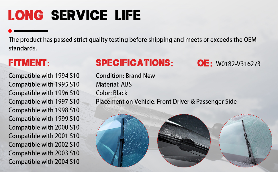 - Compatibility: Windshield Wiper Arm Set Compatible with S10 Pickup, 1994 1995 1996 1997 1998 1999 2000 2001 2002 2003 2004