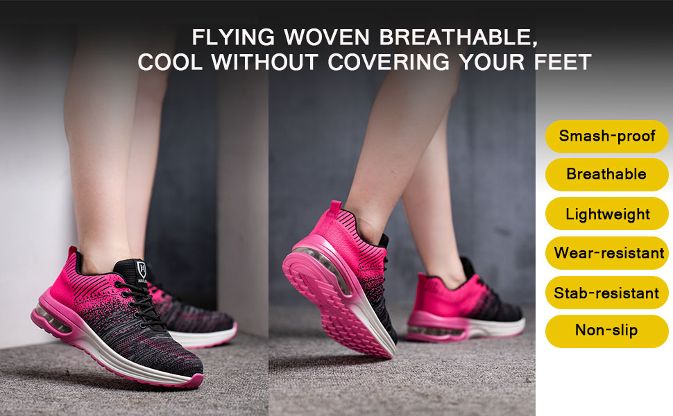 Breathable & Comfortable: Breathable knitted fabric shoe upper, quickly release moisture and heat, ensuring long-term work comfort.