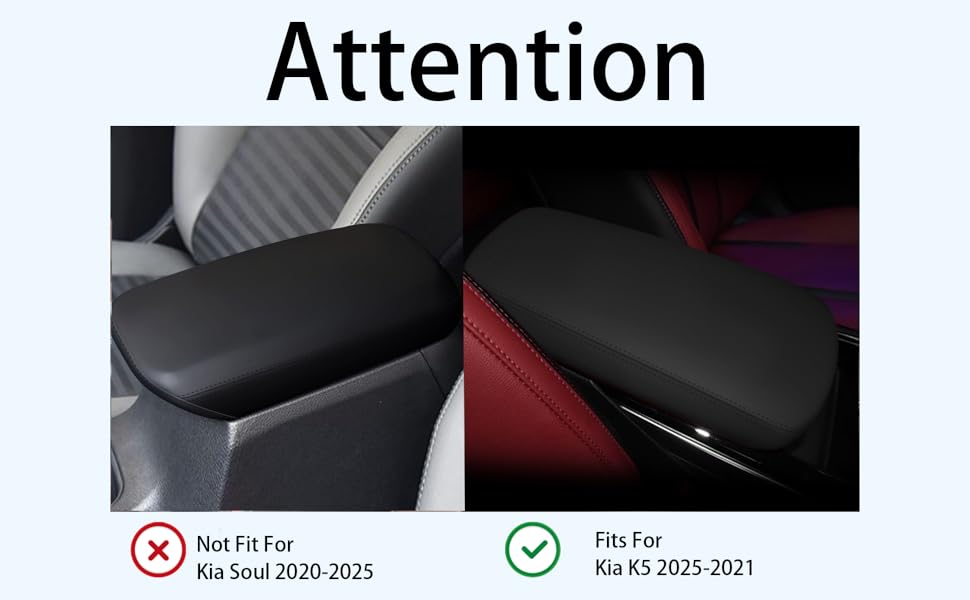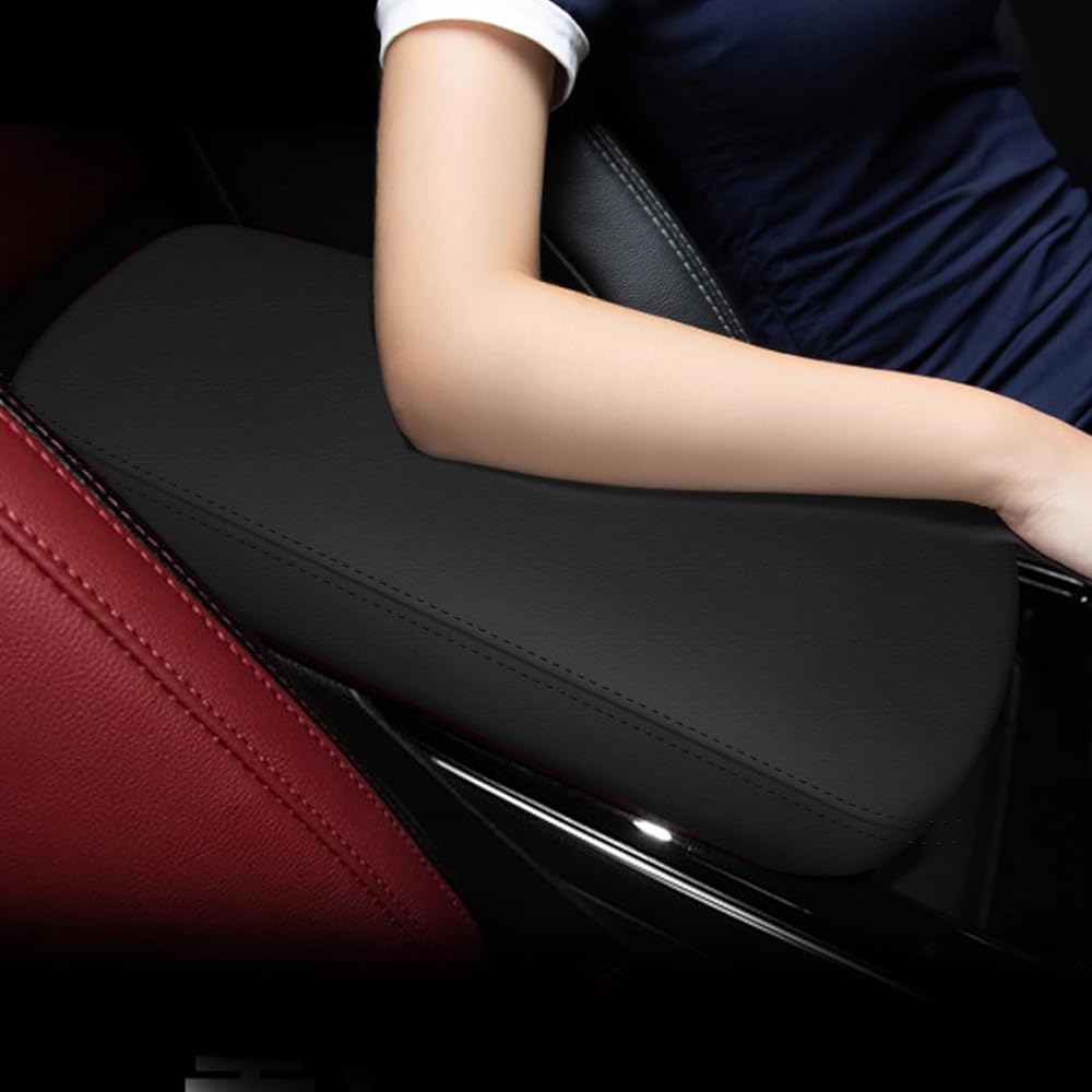 Car Armrest Cover for Kia K5 Accessories 2021 2022 2023 2024 2025 Leather Center Console Arm Rest Box Lid Seat Cover Protector Cushion Saver (Black Stitches, 2021-2025)