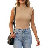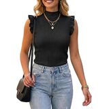 Chic Design : This ribbed tank top features a modern mock neck for a clean, elevated style, paired with subtle ruffle trim to add a feminine touch while softening the shoulders and arms