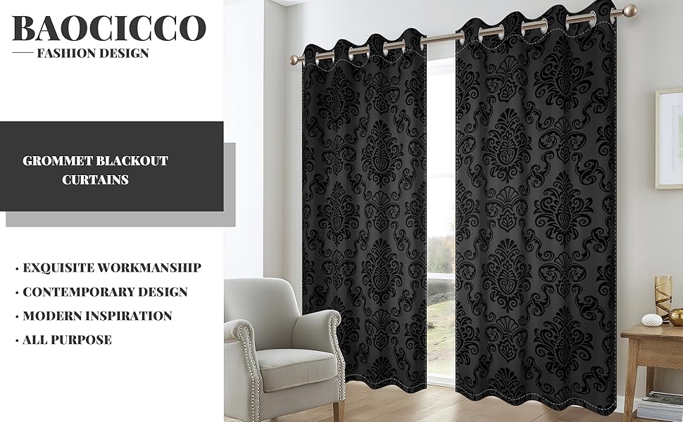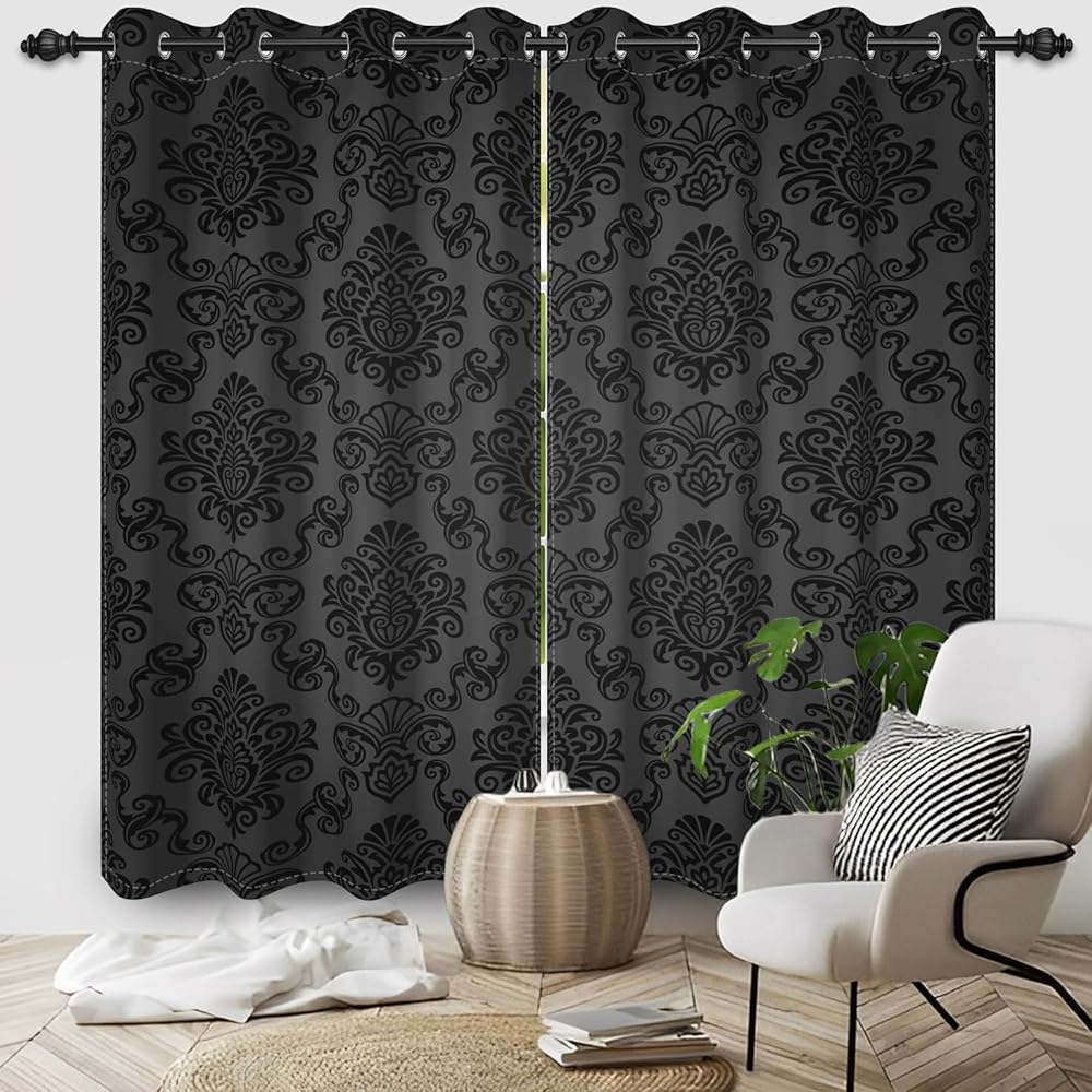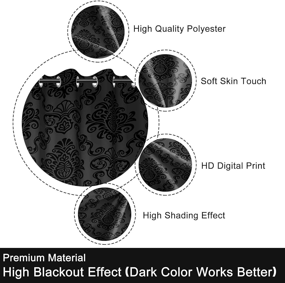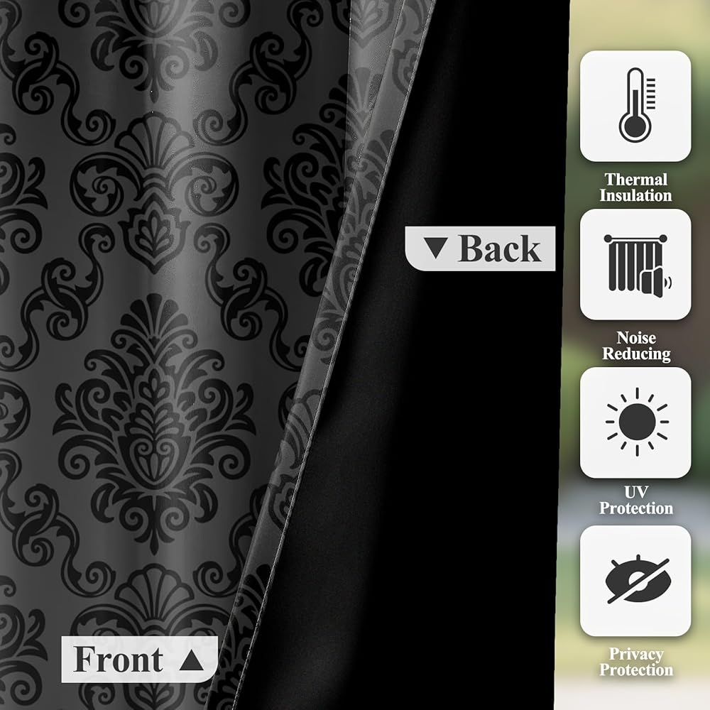 Baocicco Black Blackout Curtains 84 inch Long - Ombre Damask Patterned Window Drapes Thermal Insulted Curtains for Bedroom Living Room, 2 Panels 42Wx84L