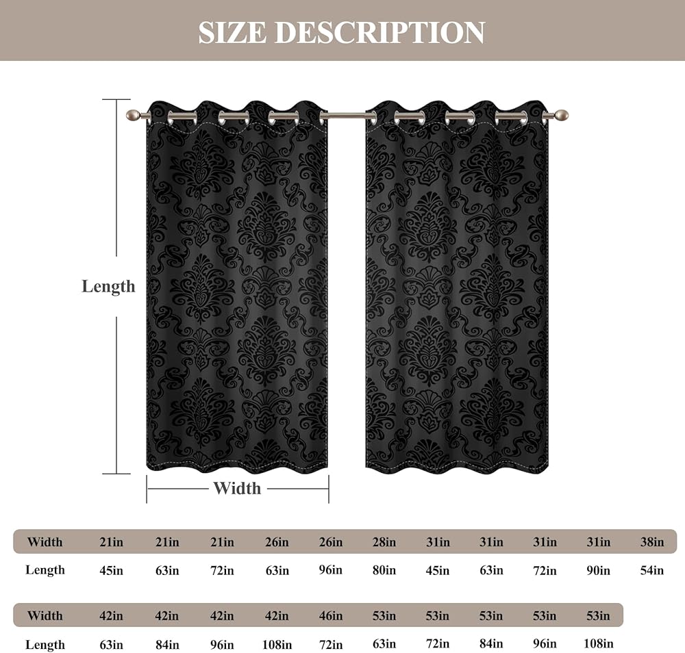 STANDARD SIZE: Package include 2 panels blackout curtain. Each Panel size: 42"W x 84"L.