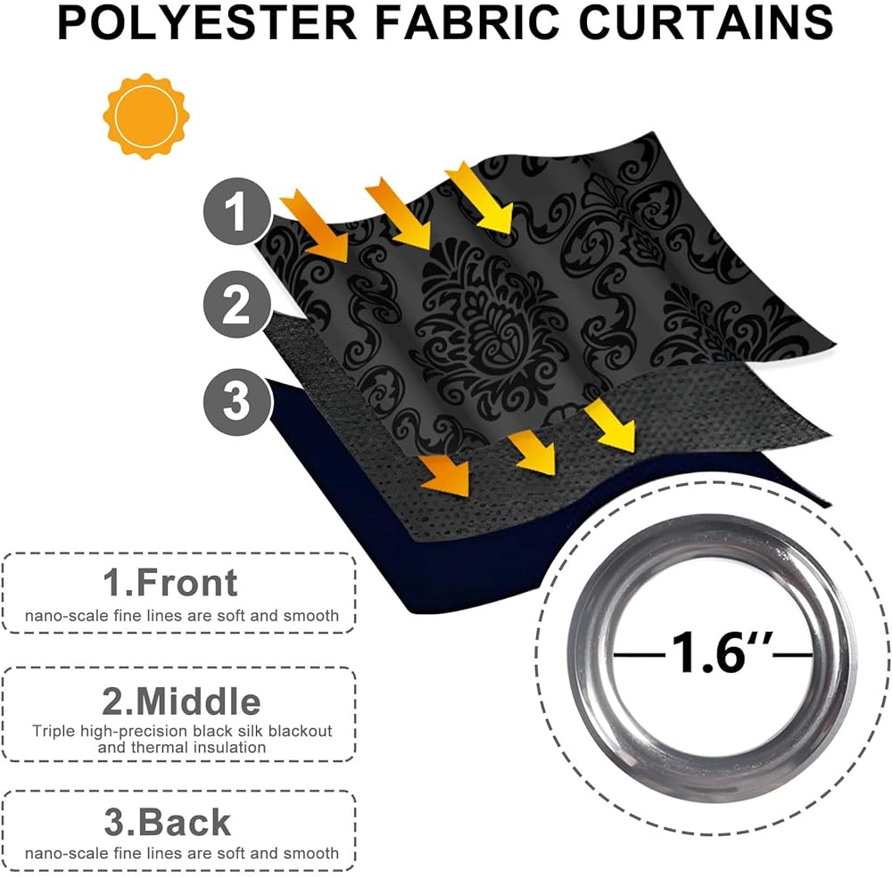 Easy To Install: The top of the window curtain is designed with grommets. Make installation easier and easy to slide during use, with smooth and unobstructed sliding.The grommet inside diameter is 1.6 inch.