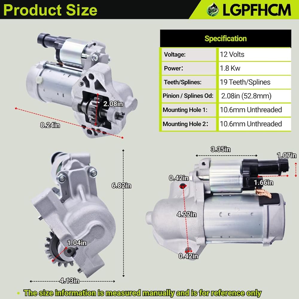 410-52318 12V 1.8KW 19-Tooth Starter Motor Compatible with Acura MDX 2007 2008 2009 V6 3.7L Counterclockwise Replace# 428000-4120 31200-RYE-A01