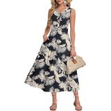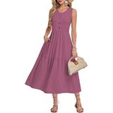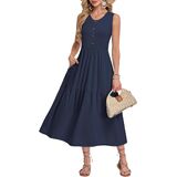 Design:Summer Long Dress features in crewneck ,Sleeveless,functional Button ,empire waist,two side pockets, midi length, Casual Loose Fit Swing dress,Sundress for women 2026, Summer dress for women 2026, maxi dress dress for women 2026,Long dress for women 2026