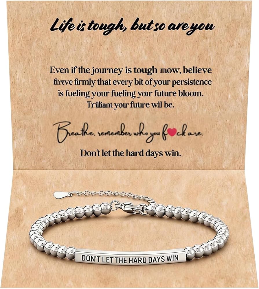 Some days feel heavier than others, and quiet reminders can make a difference. This bracelet is designed to carry a simple message of resilience, offering comfort without saying too much. The clean beaded style blends easily into daily outfits, while the adjustable design ensures a comfortable fit throughout the day. The engraved message serves as a steady reminder to keep moving forward, even when progress feels slow. Paired with a thoughtful message card, this piece becomes more than jewelry—it becomes a personal symbol of strength, reflection, and encouragement, ready to be gifted or worn as a daily reminder.