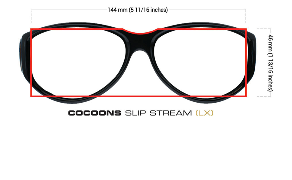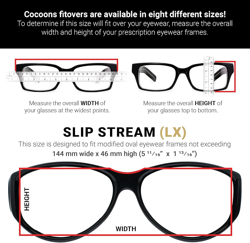 Eight Sizes – Cocoons are available in eight sizes to completely fit over most eyewear styles. Is Slip Stream (LX) the correct size? The Slip Stream (LX) fits over eyewear not exceeding 144 mm wide x 46 mm high. Visit the Cocoons store for additional options and sizes.