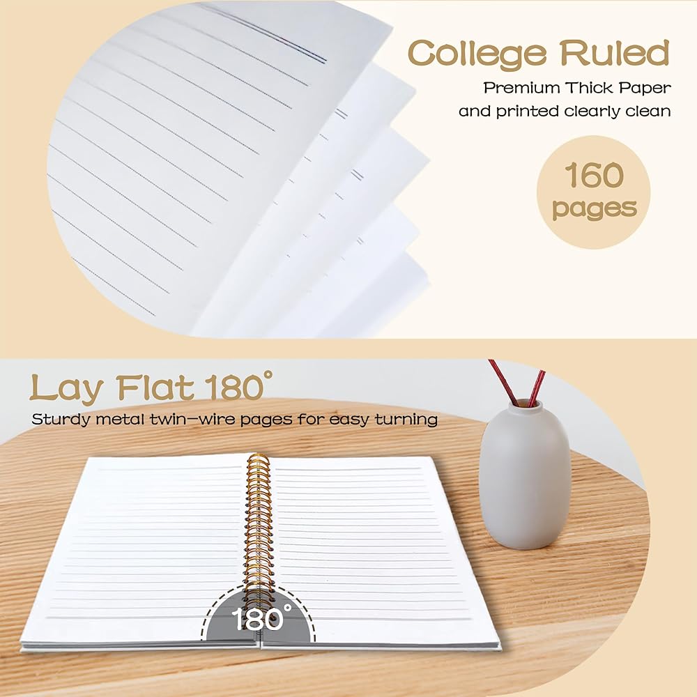 Spiral Binding: Spiral design allows the notebook to open flat or fold over easily, so you can write comfortably on both sides of the page.