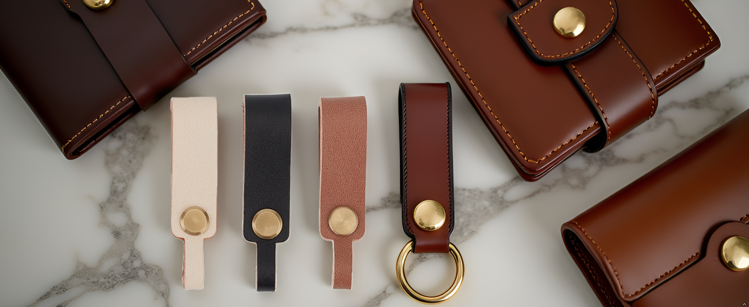 Practical Snap Button Design: This genuine leather keychain does not have a metal keyring, but the snap button and strap design can ensure that the keychain is firmly attached, which is convenient and practical