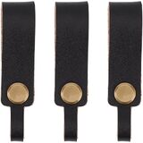 3PCS Black Genuine Leather Key Chain Holder Cowhide Keychain Connector Key Fob Organizer Detechable Handmade Full Grain Leather Hook Ring Loop Lanyard Belt Strap Keyring for Men Women Purse