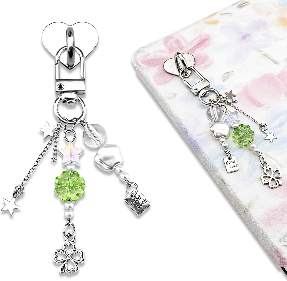 St. Patrick's Day Charm Chain Four Leaf Clover Charms for Good Luck Irish Gifts Women Bag Phone Case Accessory With Hook Gift Reader Booklovers Cute Holiday Keychain