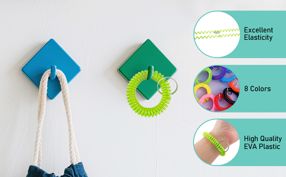Wide Applications: Spiral wrist coil keychain would be ideal for workout club locker, tennis courts, pool, office, workshop, laundry key use and many more application. Use to hold keys, ID labels, memory cards, number tags, etc.. If you remove the steel ring, you can use it to tie your hair.