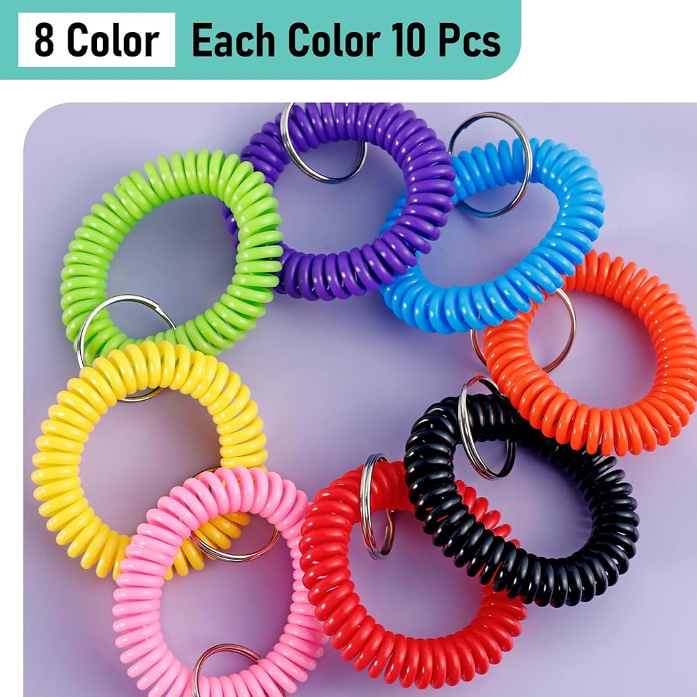 Super-Value Package: You will receive 80 pieces of spiral keychain braceles in 8 colors (pink blue purple green orange black yellow red), 10 pieces each. Enough quatity for organize your keys, and the quantity is sufficient for your use. 8 kinds of different colors of wrist coil key ring, to help distinguish the keys. To match different personalities and styles.