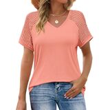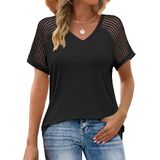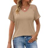 Features: Our casual women's short sleeve tops feature a basic v-neck design and crochet short sleeves. The v-neck and cute crochet short-sleeve design make you feel more feminine this summer