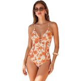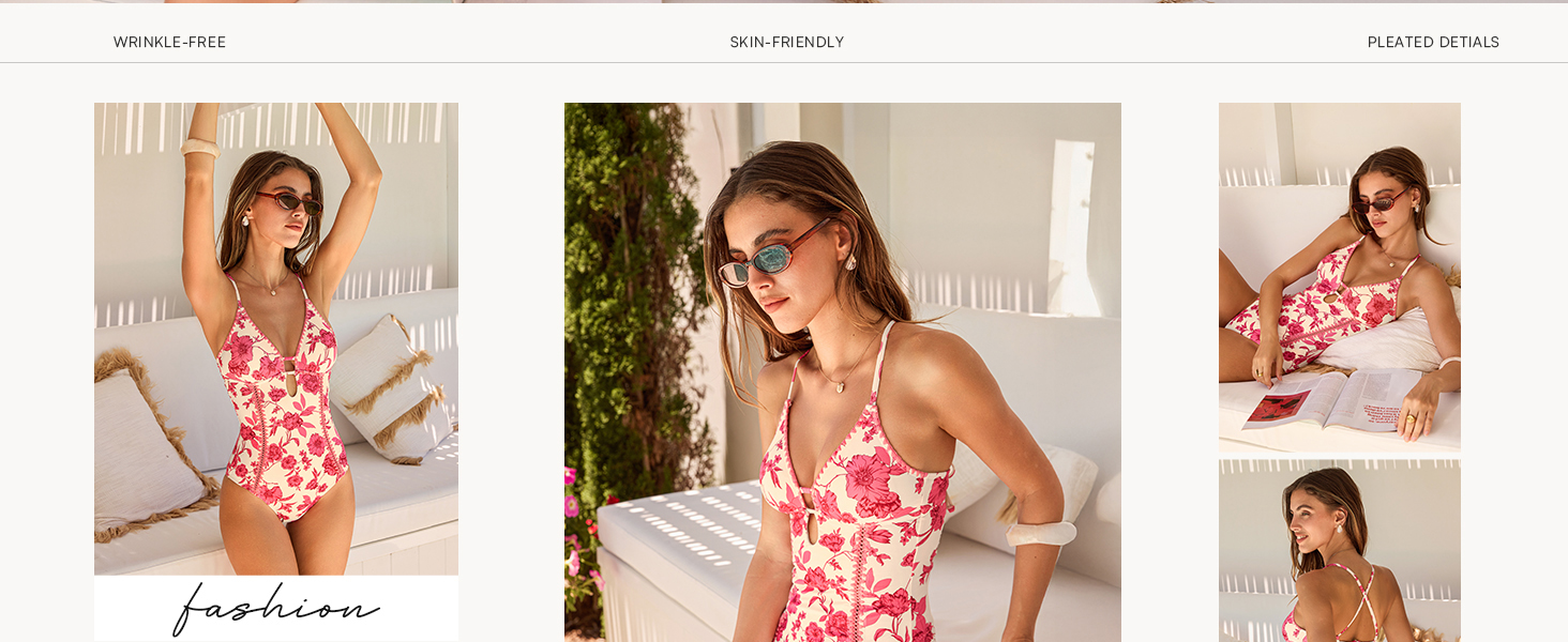 Design: This one piece swimsuit features a plunging V neckline with front keyhole cutouts and delicate shell stitch edging for a feminine finish. Crisscross lace up straps at the back and seaming through the waist visually slim the figure, while the pink floral print adds a soft touch. About Cup Style: with removable soft pads.