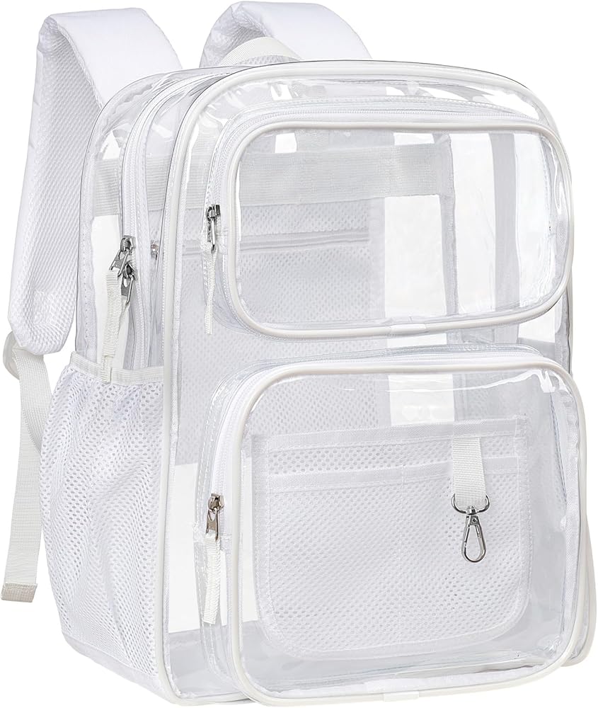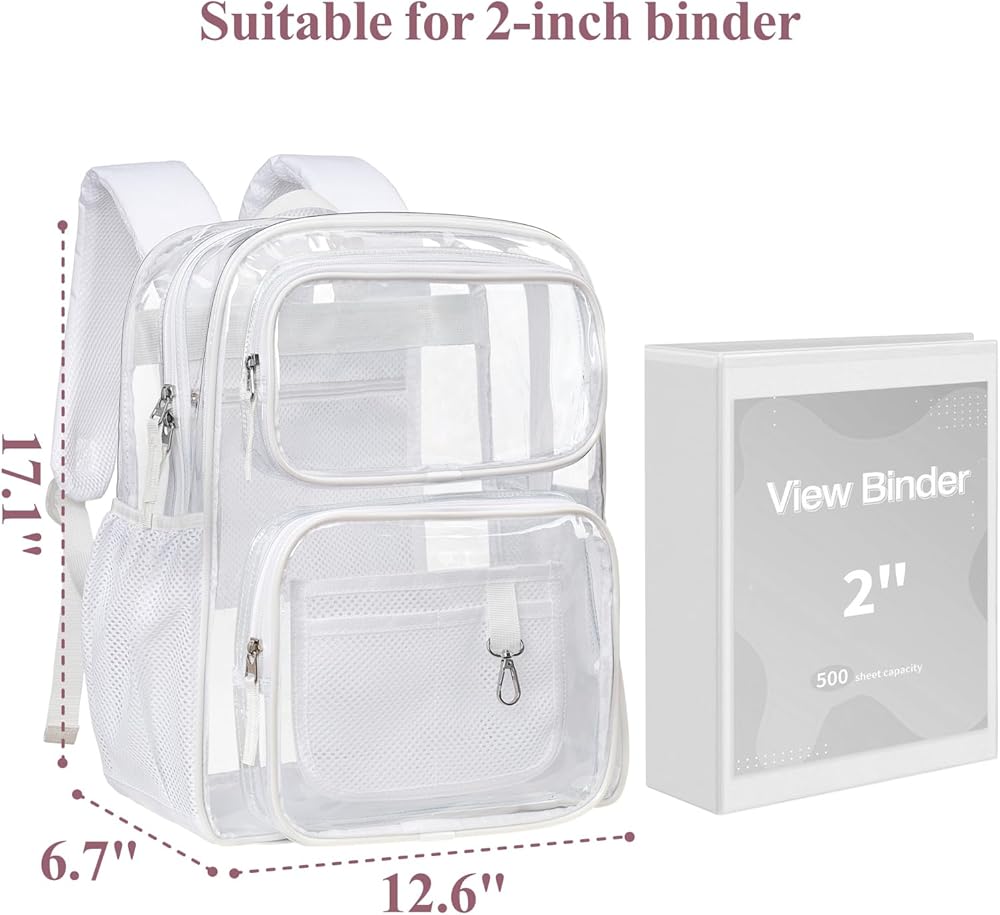 PACKISM Clear Backpack for School - 17 inch Large Heavy Duty Bookbag, Reinforced See Through PVC Transparent Backpack for Students Men Women, Light White (Age 12+)