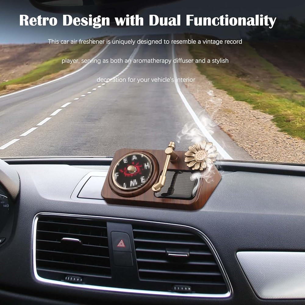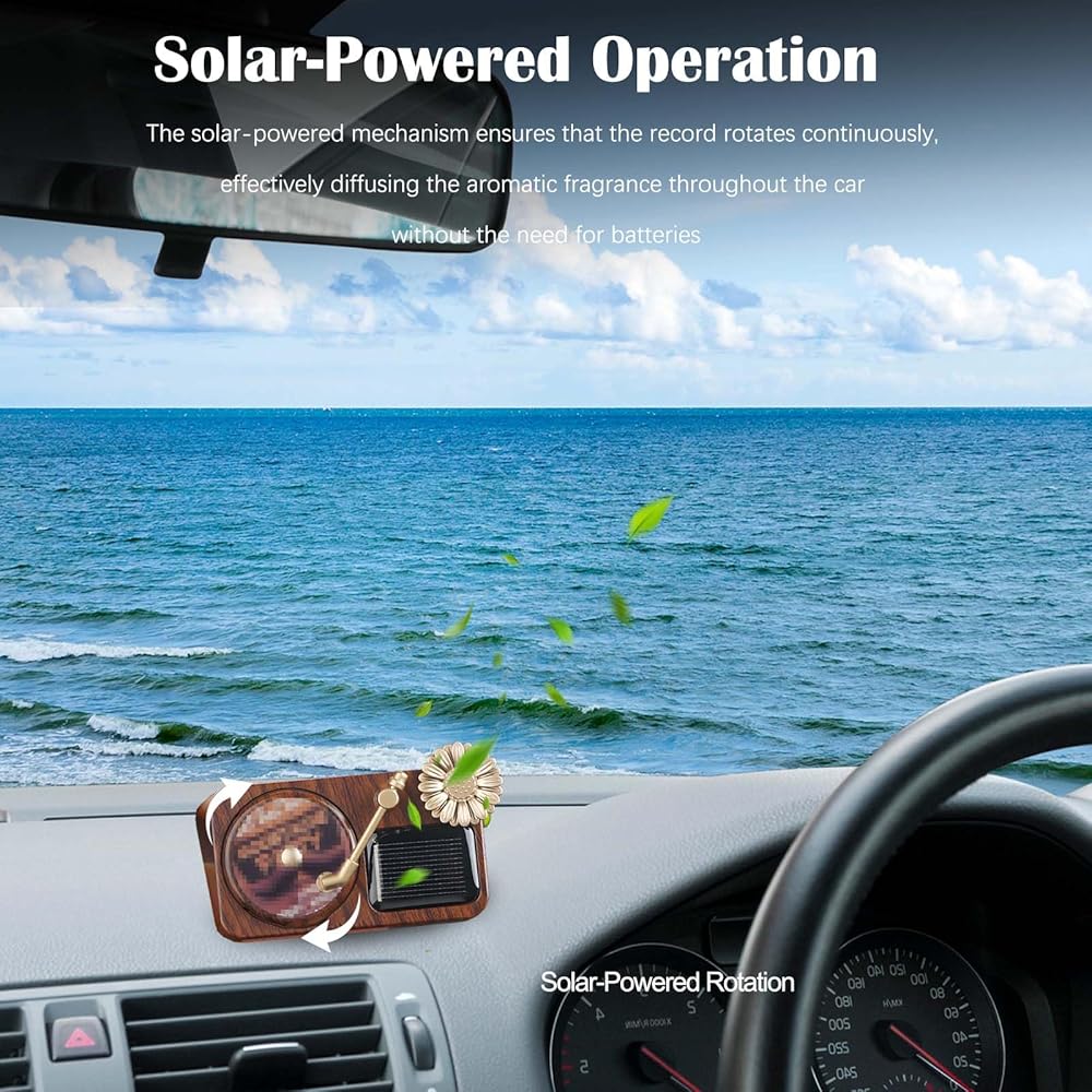 Solar-Powered Operation - The solar-powered mechanism ensures that the record rotates continuously, effectively diffusing the aromatic fragrance throughout the car without the need for batteries.