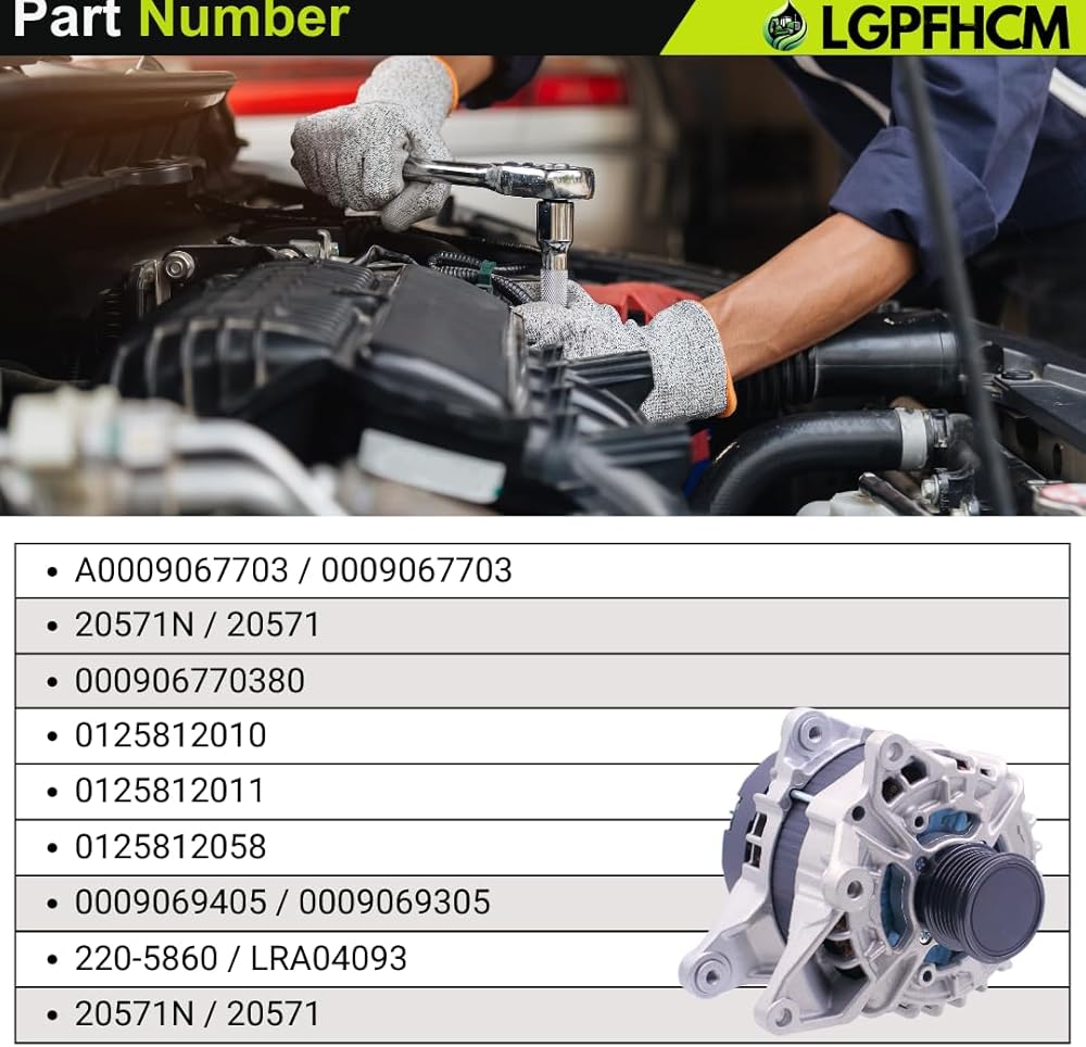 12V 190A A0009067703 Alternator for Mercedes-Benz C300 W205 2015-2018 For GLC300 C253 2016-2019 For GLC350e 2020 For Metris SC6 pulley 2018-2021 For Metris 2021 CW 4-Groove #0125812011 0125812058