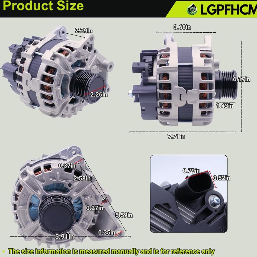 - Specifications: ① Voltage: 12V / ② Amperage: 190A / ③ Rotation: CW (Clockwise) / ④ Number of Grooves: 6-Groove Decoupler Pulley / ⑤ Condition: New