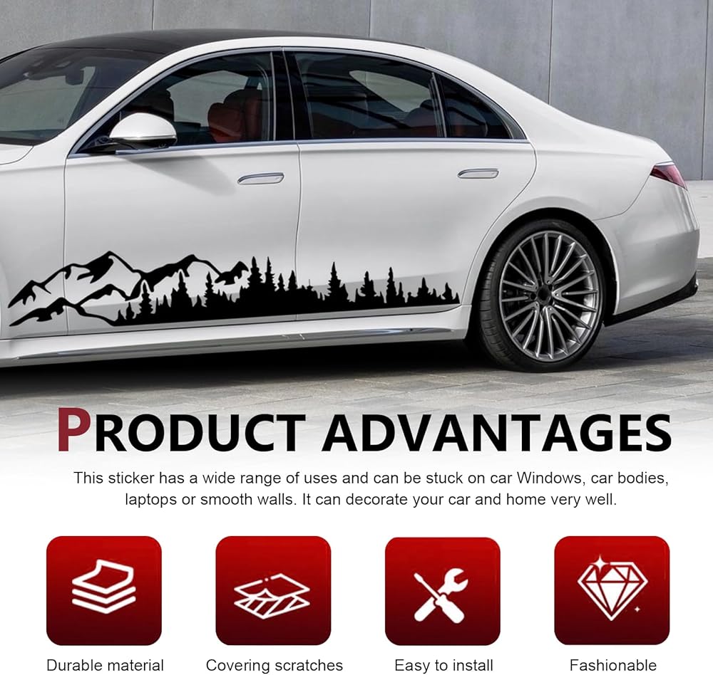 Unique Design: Featuring sleek lines for a sporty, edgy aesthetic, this mountain forest design is perfect for expressing your personality on the road. It adds a touch of nature-inspired artistry that catches the eye. Perfectly enhances your vehicle's appearance without worrying about wear and tear, delivering reliable performance and a stylish upgrade to help you stand out on the road.