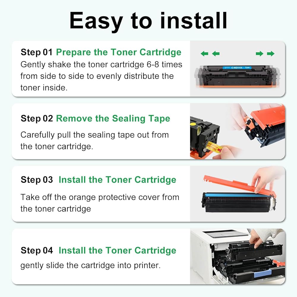 What You Get: 1 pack of 206X W2110X black toner cartridge + 1 pack of 206X W2111X cyan toner cartridge + 1 pack of 206X W2112X yellow toner cartridge + 1 pack of 206X W2113X magenta toner cartridge. Compatible with HP 206X 206A toner cartridges