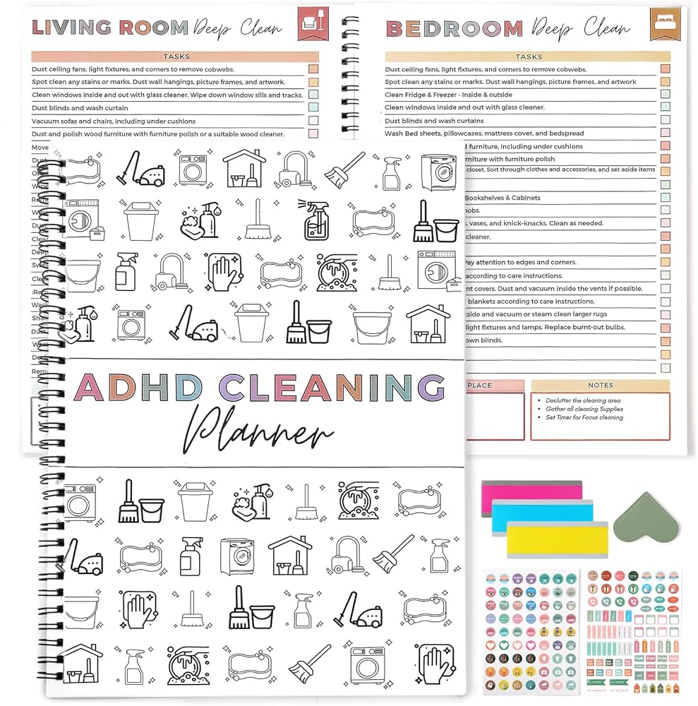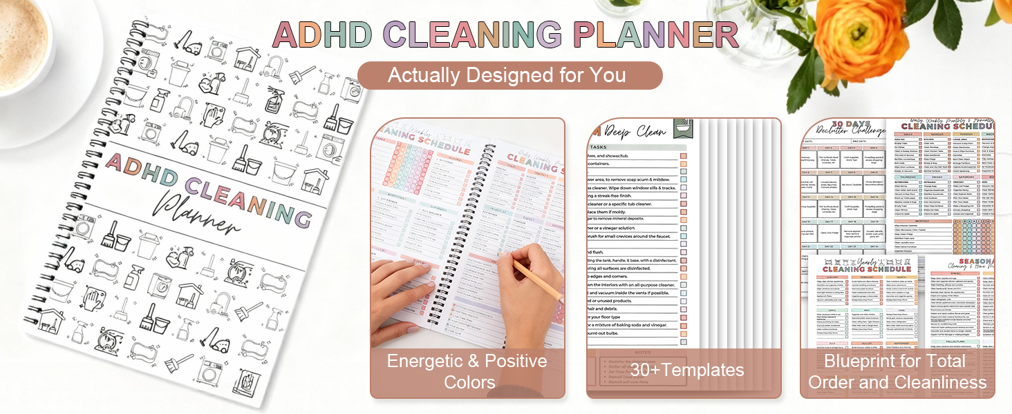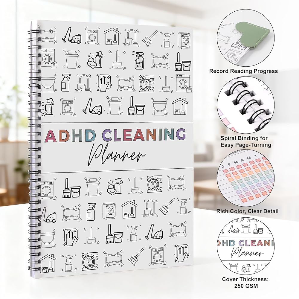 [Break Cleaning Into Simple, Achievable Steps]Specially designed for ADHD minds, this planner turns overwhelming chores into clear, manageable tasks. With structured daily, weekly, and monthly pages, it helps you clean smarter, stay focused, and feel in control of your home again.