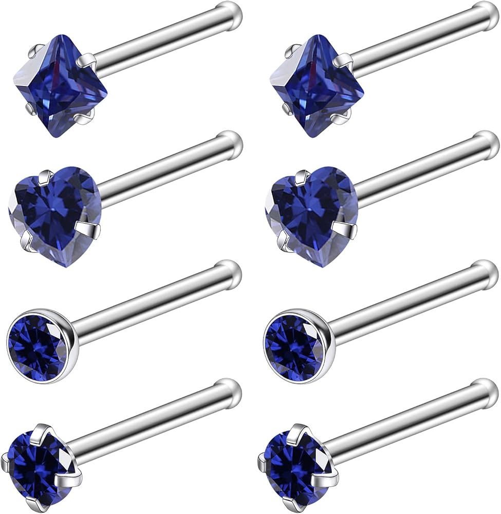 8pcs F136 Titanium Nose Studs Rings Piercing Jewelry