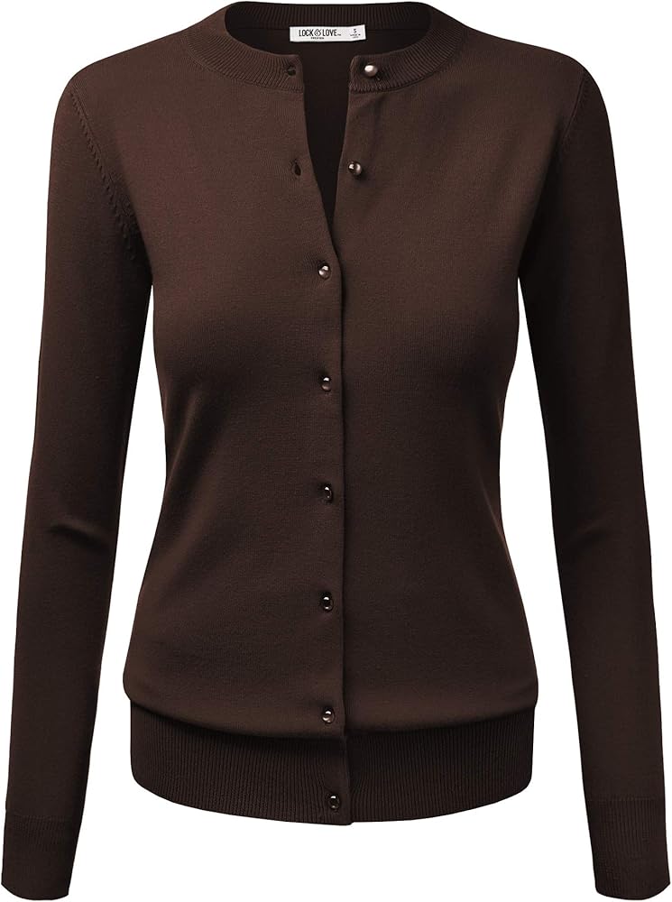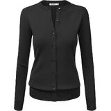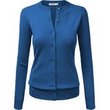 It has all the classic details that never go out of style like long sleeves, a buttoned-down front, and ribbed trim with cute side buttons at cuff.