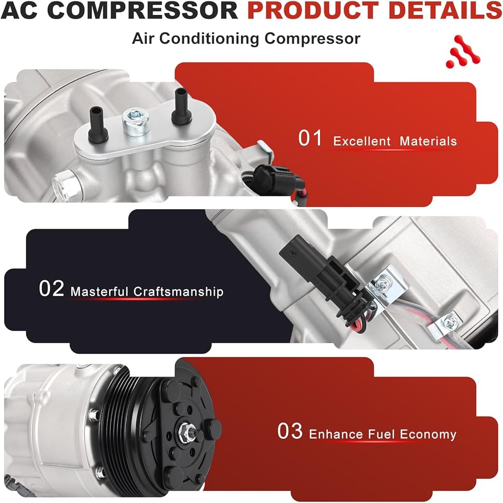 【VEHICLE FITMENT】-- This precise AC compressor is engineered exclusively for Buick Enclave (2013‑2022) with 3.6L V6 engine; for Chevrolet Traverse (2013‑2022 with 3.6L V6; 2018‑2019 with 2.0L L4); for Cadillac XTS (2013‑2019) with 3.6L V6; and for GMC Acadia (2013‑2017 & 2017 Limited with 3.6L V6; 2017 with 2.5L L4). It guarantees a direct, bolt‑on replacement, making this compressor the exact fit your vehicle requires for a hassle‑free installation.