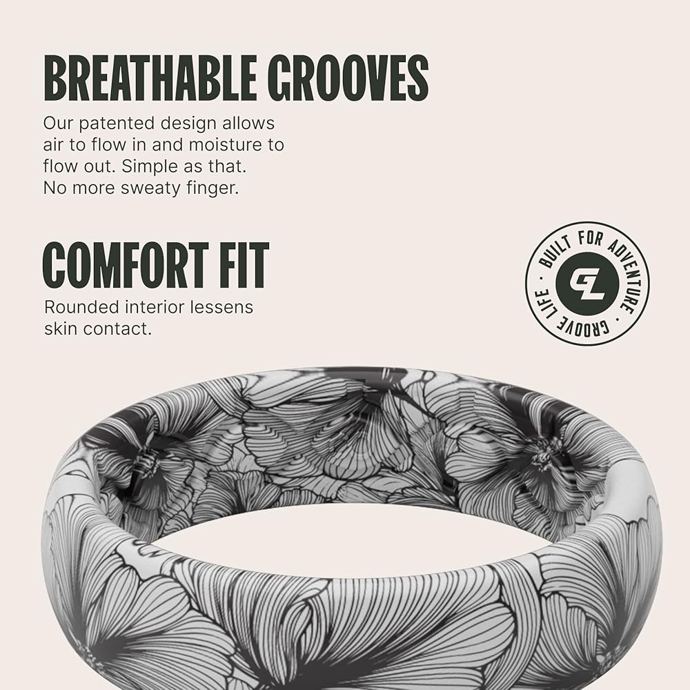 High quality, breathable design allows moisture to escape from under all of our silicon wedding bands for men and women for maximum comfort and performance. This is what makes Groove stand apart from everything else on the market. Our silicone wedding band was designed with your comfort in mind, not just your wallet. That's why we made the most comfortable rubber wedding bands for women that you can find. We are so confident in our silicone rings that we back it with a 94 year lifetime warranty. If you ever break it, lose it, or stretch it out, we will replace it for free! We also wanted our rings to be just as unique and cool as you are. That's why we spend a ton of time making new designs for each women's and men's silicone wedding band that we create.