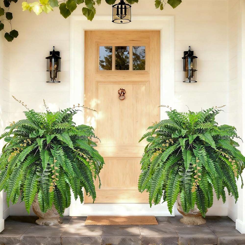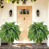 Two UV Resistant Large Fake Ferns:Meet our 2026 Upgrad Giant Boston Fern-We have specially incorporated an anti-ultraviolet treatment to ensure that it will not fade for a full year-The leaves of each fern extend to a width of 48 inches with 88 lush fronds. The leaves radiate beautifully from the center, creating a full, cascading look that's both dense and natural. With its generous size and volume, it effortlessly becomes the focal point in any space 1.8-2.5 meters wide. It's not just decor—it's a vibe.