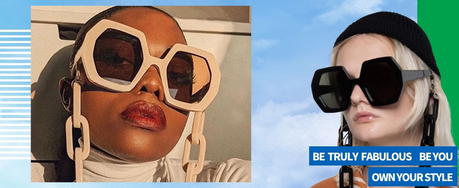 Desgin: One-piece nose pad design keeps your hair tangle free. Frame is made of quality polycarbonate material, sturdy hinge, sweat - resistant, comfortable to wear. We offer stylish and colorful options for these chunky rimmed big women sunglasses. They are cute and unique