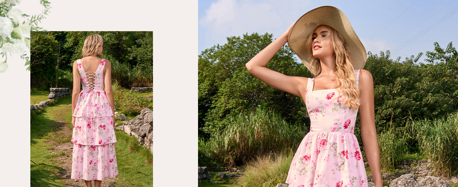 Fabric: floral midi dress, sundress, flower dress for women is lightweight and soft, offering a cool and comfortable feel, ideal for hot summer days or beach vacations