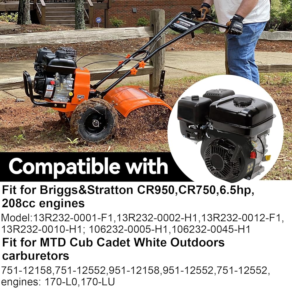 Compatibility with Powermore and Other Brands: Fit for many 208cc Powermore engines, including models 170-L0 and 170-LU. Additionally, this carburetor can replace original carburetors with part numbers 751-12158, 751-12552, 951-12158, and 951-12552 in equipment from brands such as fit for MTD, fit for Cub Cadet, and fit for White Outdoors.