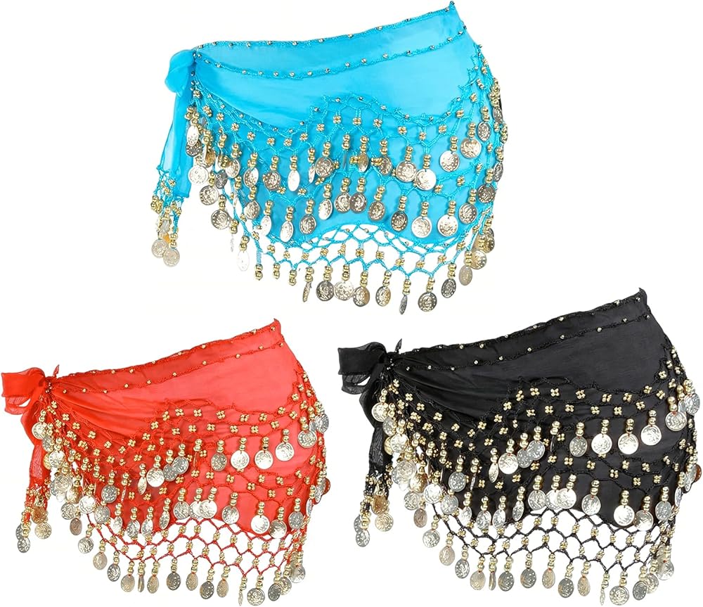 💃 3-Piece Color Variety Set: Vibrant red, black, and blue hip scarves for endless styling options! Perfect for performances, practice sessions, or as costume essentials—effortlessly switch colors mid-dance and enjoy ultra-portable roll-up storage