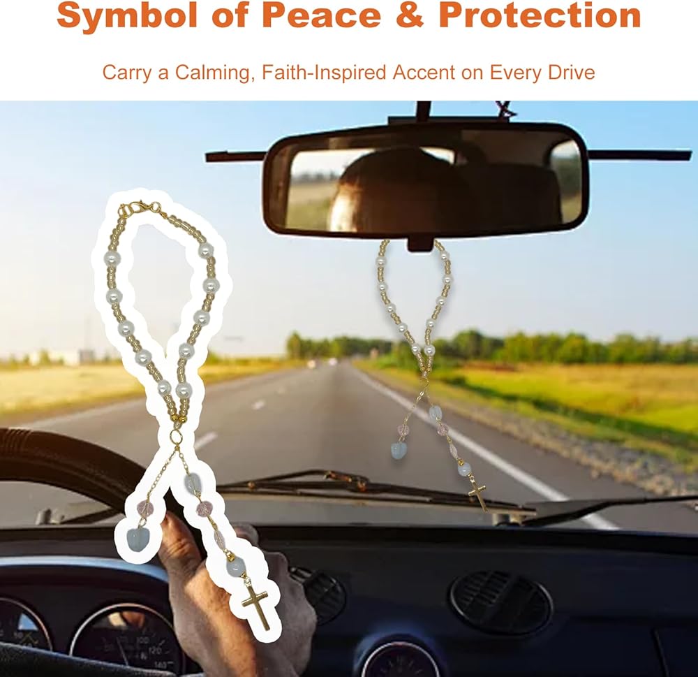 Premium Materials: Crafted from natural jadeite paired with full, round pearls and glass beads, this crystal cross for car mirror hanging is built to last. The alloy cross and lobster clasp offer durability, resisting fading and breakage for long-term enjoyment