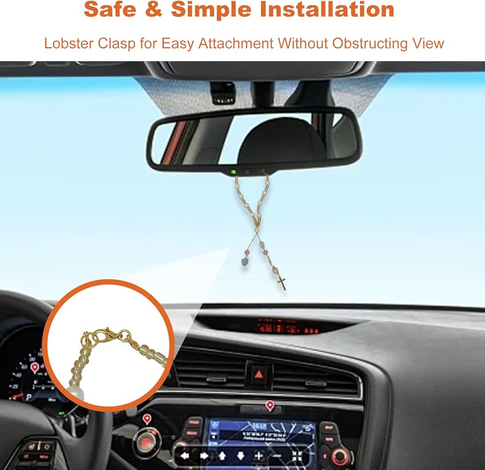 Easy Installation and Use: Equipped with a sturdy lobster clasp and an ideal length, this cross mirror hanger for car easily attaches to your rearview mirror or other suitable spots. Its design avoids obstructing the driver's view, ensuring both safety and style