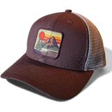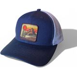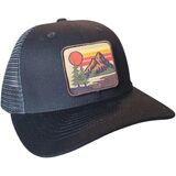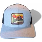 - RETRO DESIGN: Features a vintage-inspired patch with mountain landscape, pine trees, and sunset design in retro color scheme