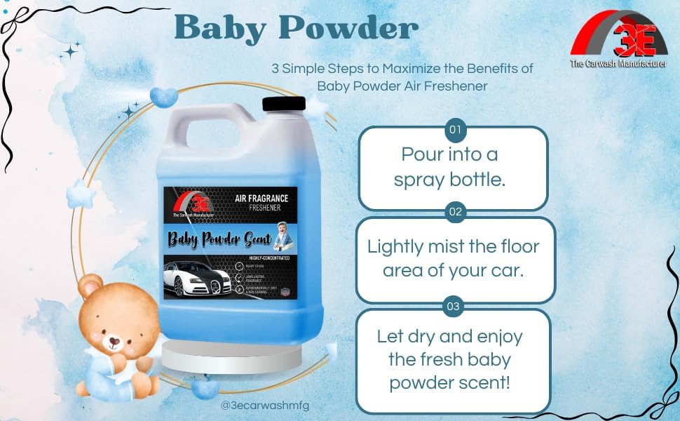 ⭐ PROFESSIONAL-GRADE BABY POWDER SCENT A premium, long-lasting Baby Powder fragrance trusted by car washes, mobile detailers, and dealerships. Creates a clean, fresh scent customers instantly recognize and love.