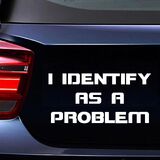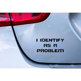 Make a bold statement with this witty vinyl decal that reads 'I Identify as a Problem' - perfect for adding a dash of humor to your car, truck, or laptop. Measuring 8 x 4 inches, this decal is sized for optimal visibility while maintaining a clean, professional look. Crafted from premium weatherproof vinyl material, this sticker is built to last through various weather conditions without fading or peeling.