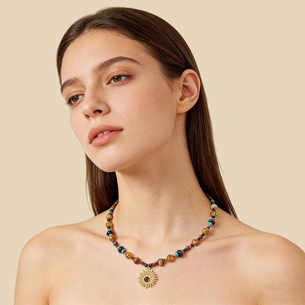Elevate your jewelry collection with our MEETCUTE Boh0 Tiger Eye Beaded Necklace—a perfect blend of artistry, symbolism, and vintage charm. Inspired by free-spirited boh0 aesthetics, this necklace features natural tiger eye beads that shimmer with earthy tones, paired with intricately designed gold sun, star, and sunburst charms. Each piece is handmade with utmost care, using premium tiger eye stones to ensure longevity and a timeless look.