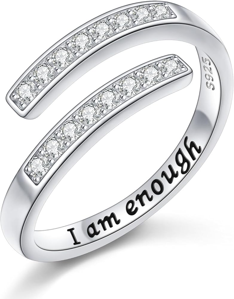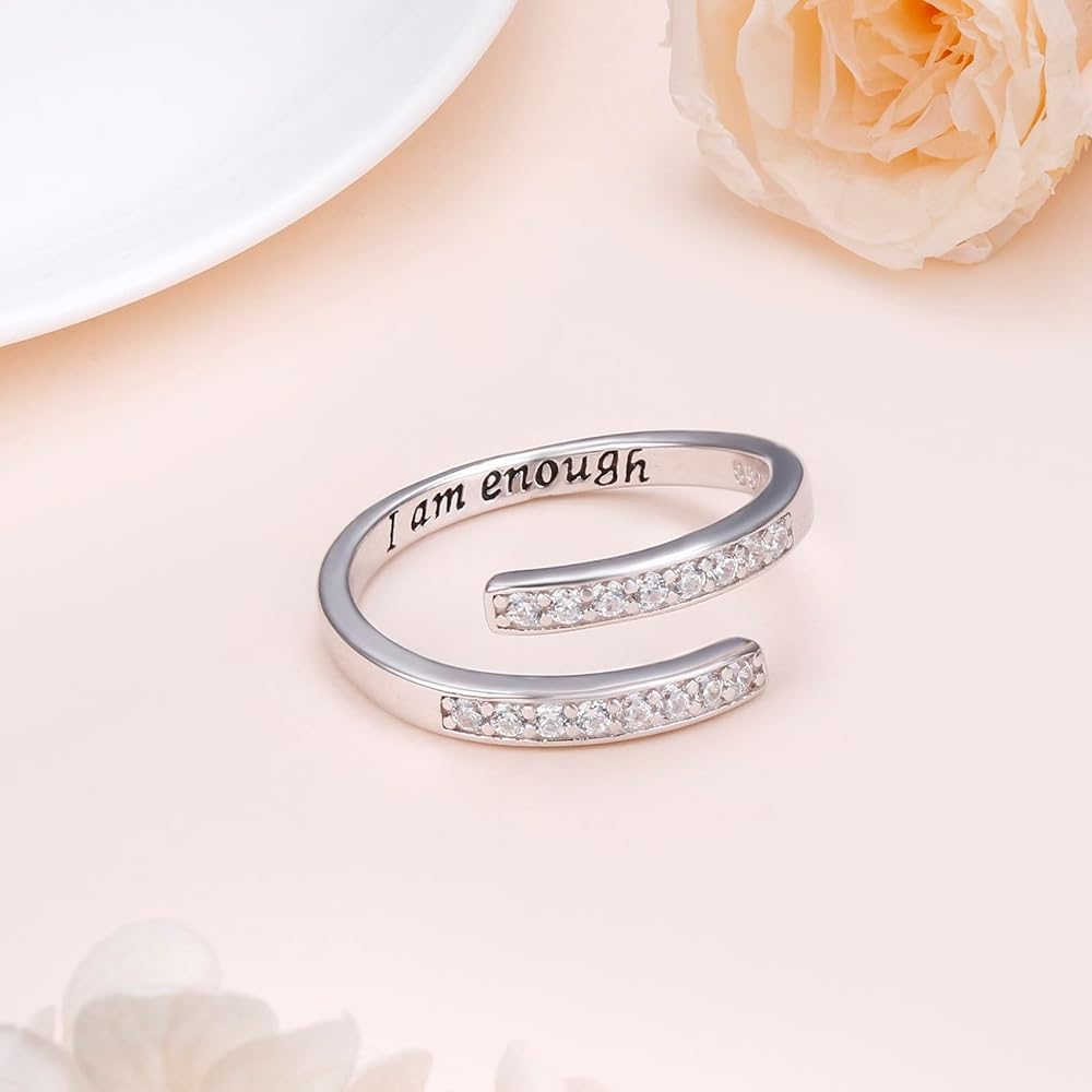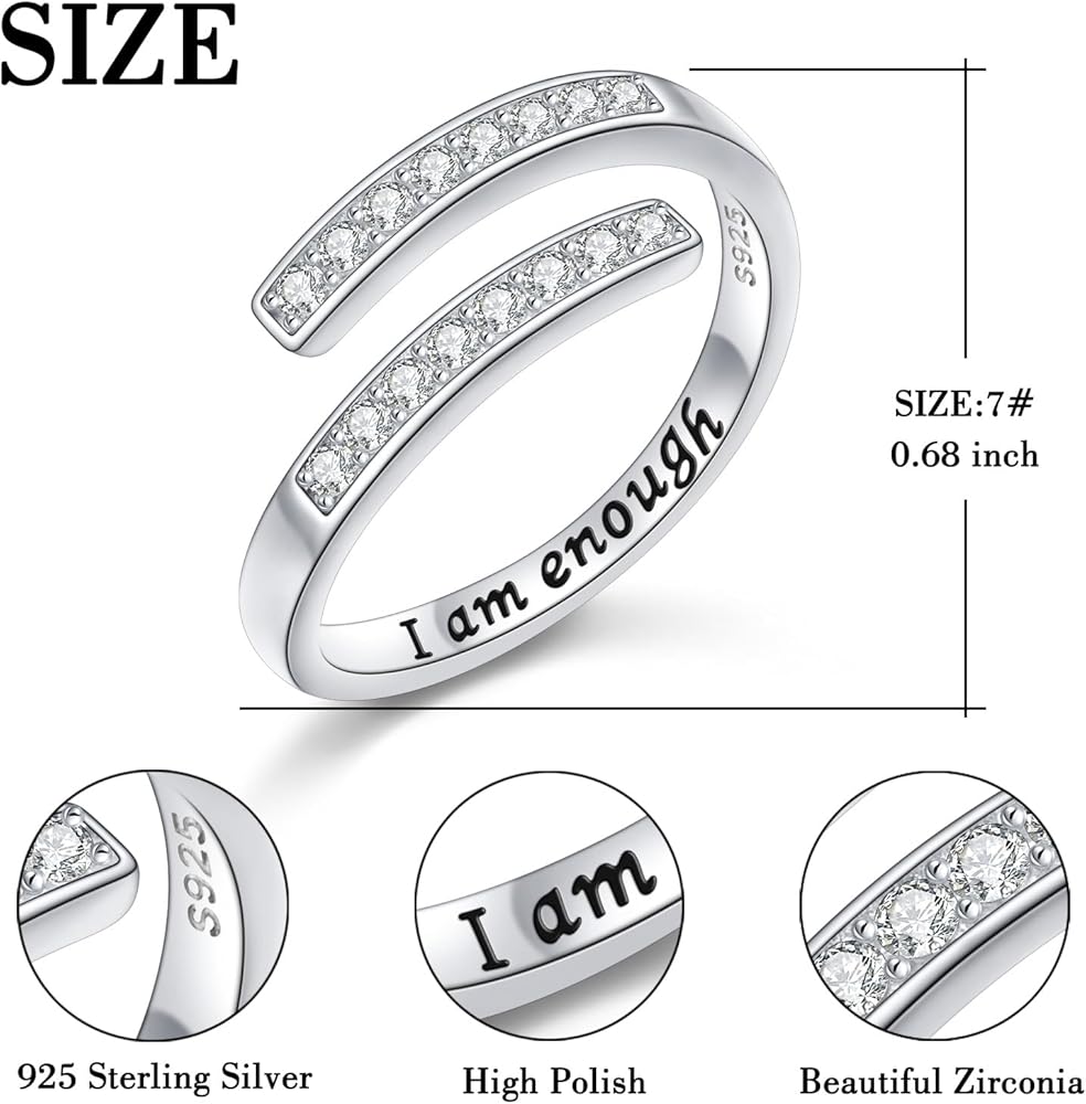 MATERIAL - This women's inspirational I am Enough ring is made of 925 sterling silver, free of nickel, lead, and cadmium, and is allergic to the skin.It is not easy to break, discolor, or fade.