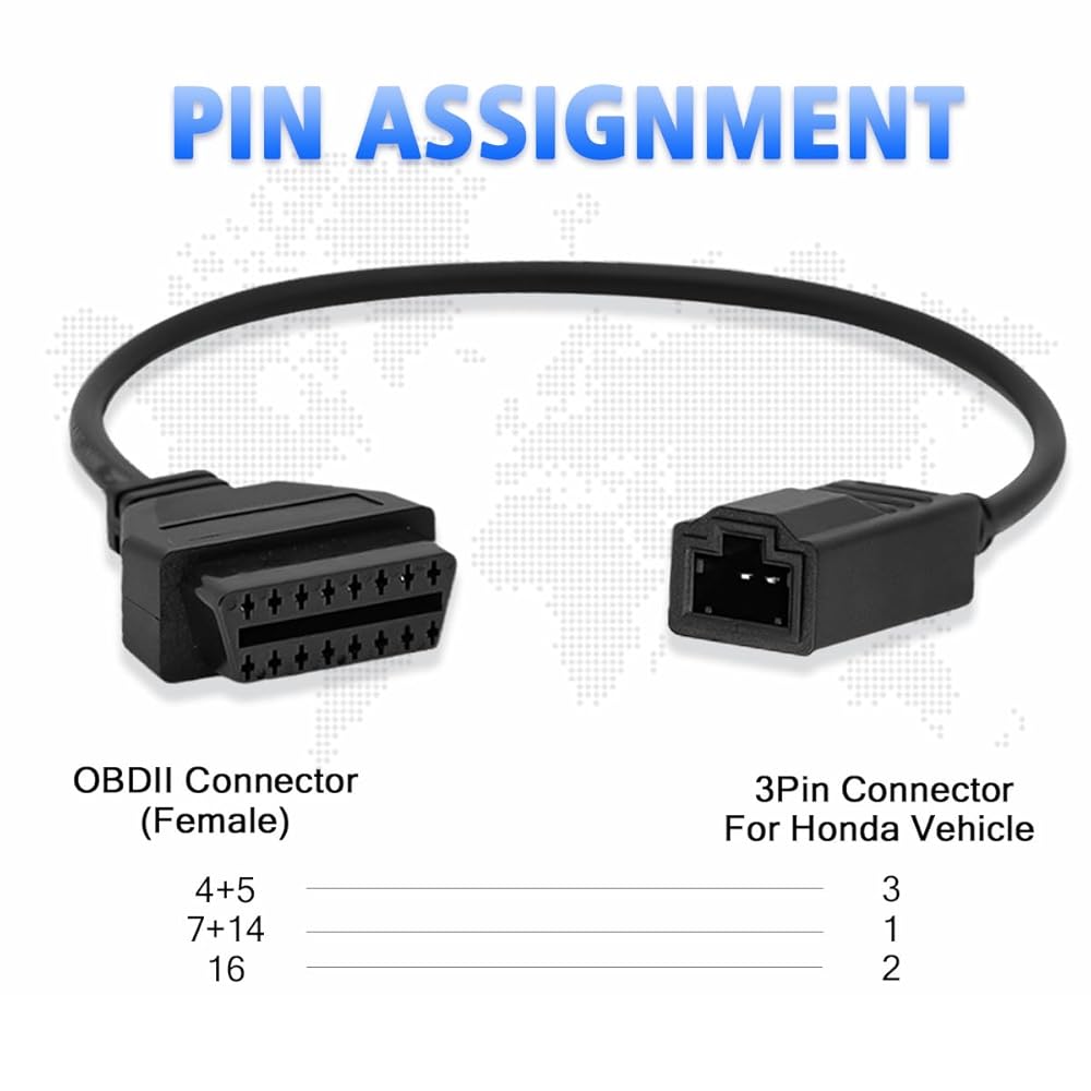 【Easy to Use】For this obd1 to obd2 3pin adapter cable for Honda, you can connect your vehicle model to a compatible OBD2 diagnostic interface.This 16 pin female connector supports many diagnostic tool. It can be used with your code reader or wireless OBD2 Bluetooth reader/resetter scanner.