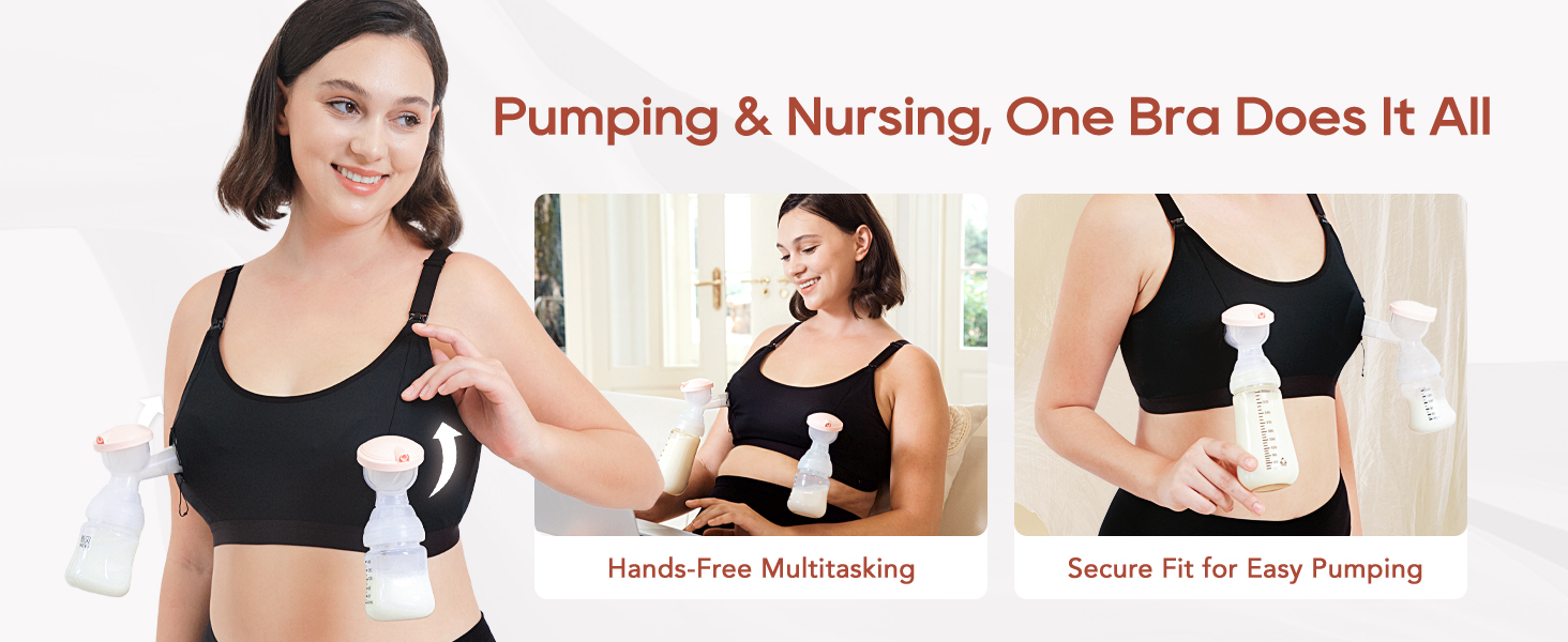 Instant Switch: Pumping to Nursing, No Bra Change: Use front zippers (each breast, nipple-to-shoulder) for hands-free pumping, then unclip nursing clasps for breastfeeding—no bra changes! Zippers hold bottles secure; clips release easily for feeding. Seamless all-day transitions!