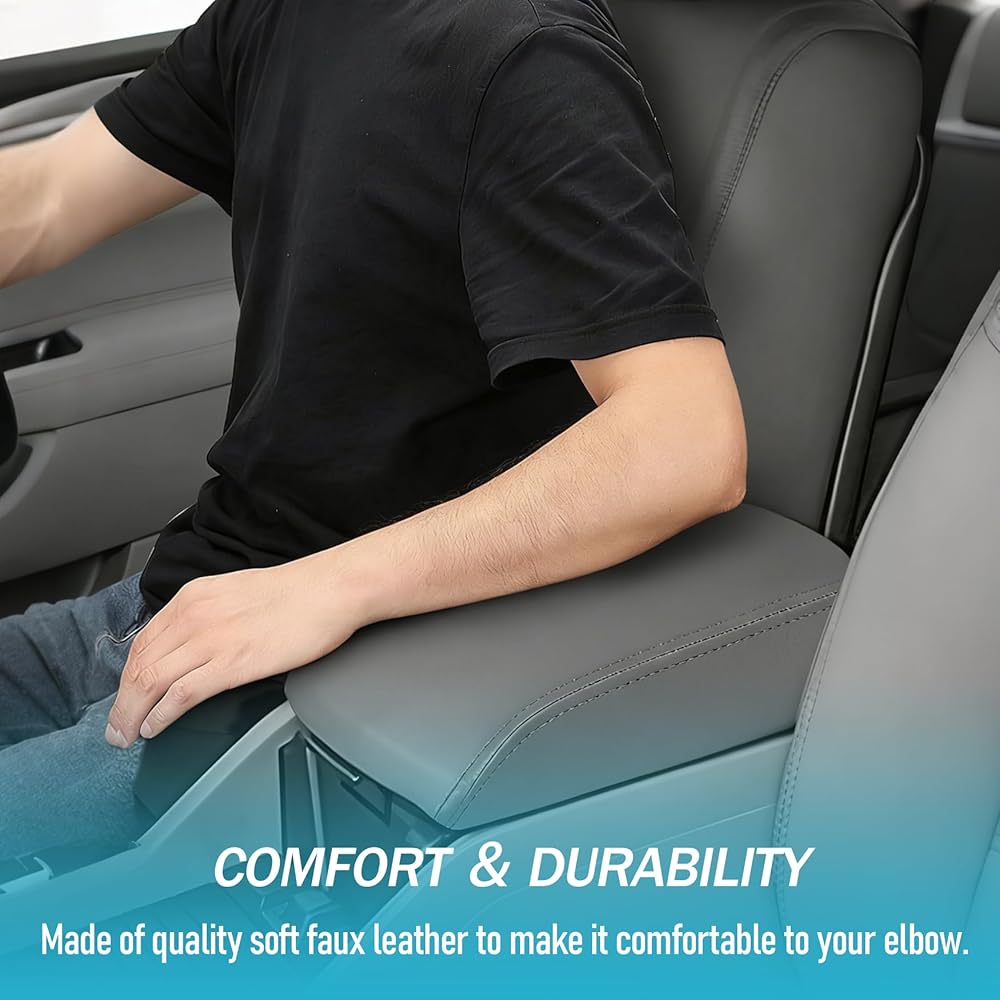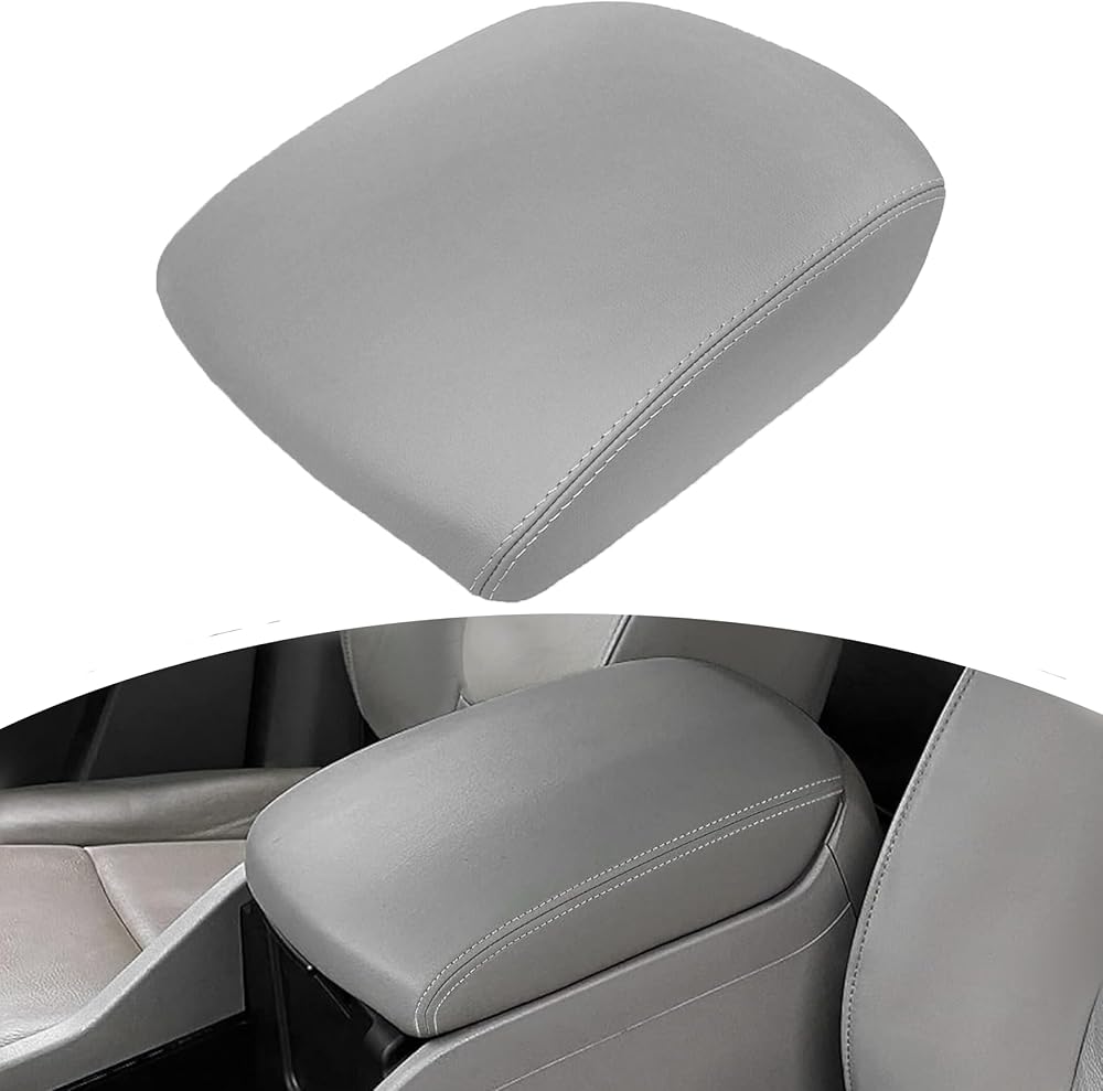 Mythoria Car Center Console Lid Cover Replacement Fit for Honda Pilot 2009 2010 2011 2012 2013 2014 2015-Armrest Replace Covering, Anti-Scratch, Gray (Leather Part Only)