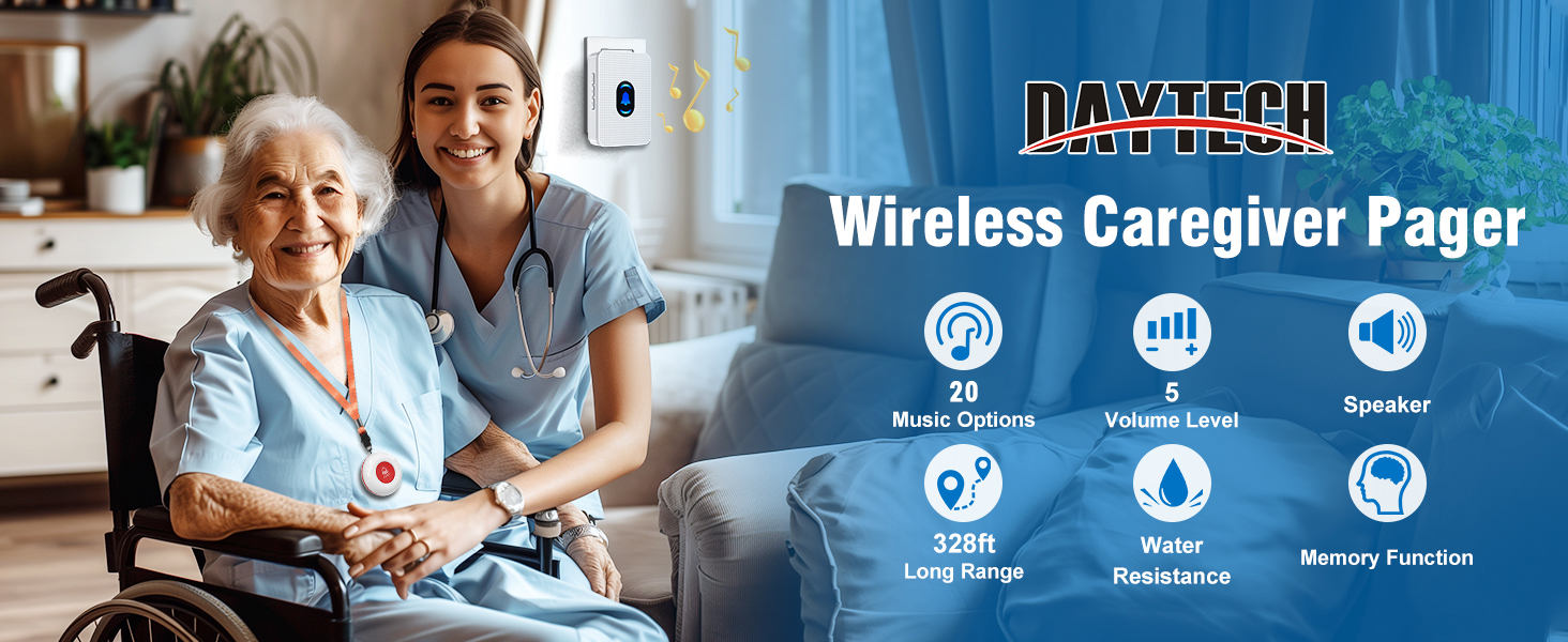 STAY MORE INDEPENDENT AND IN CONTROL: The Daytech caregiver pager for seniors is a wireless, long range panic button for elderly and other people who need extra care, which gives back some privacy and independence to the patient or elderly person, whilst providing peace of mind to their family members