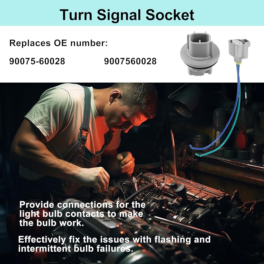 Replacement For - 90075-60028, 9007560028, turn signal light sockets is used for the light from dim or not working, the socket are shorting out, melting or burning; And front turn signal bulb socket is a great upgrade for an older setup and the bulbs is brighter and more secure within the unit