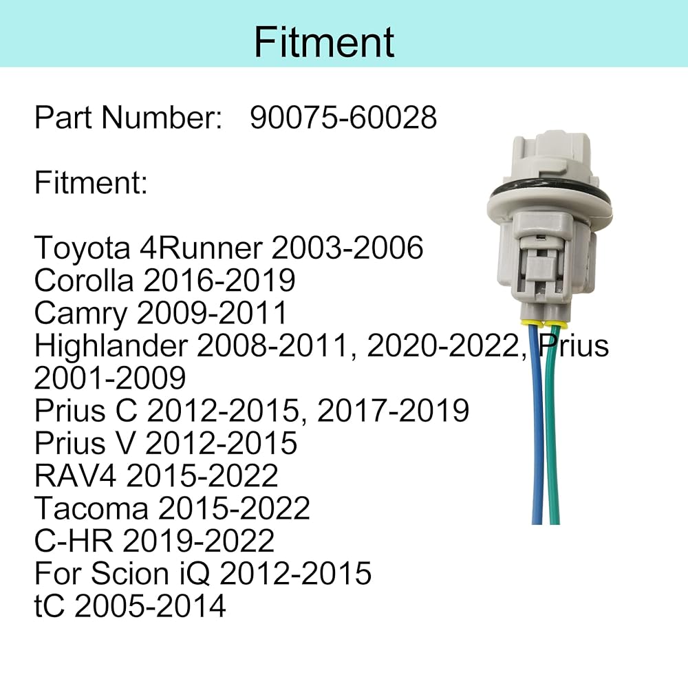 Compatibility list: Camry 2009-2011, 4Runner 2003-2006, , Tacoma 2015-2022, C-HR 2019-2022, Corolla 2016-2019, Highlander 2008-2011, 2020-2022, Prius 2001-2009, Prius C 2012-2015, 2017-2019, Prius V 2012-2015, RAV4 2015-2022; For Scion iQ 2012-2015, tC 2005-2014